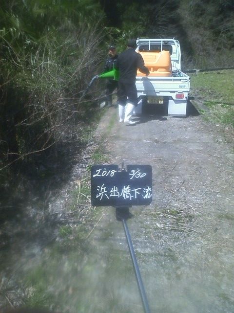 有田川ダム上に第一回目の鮎の放流が行われました。